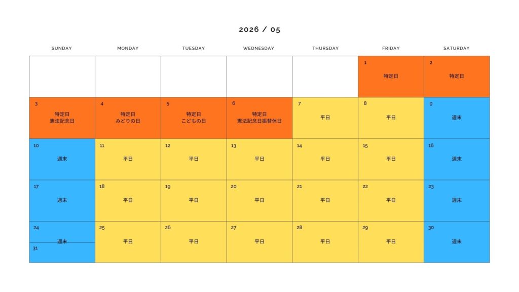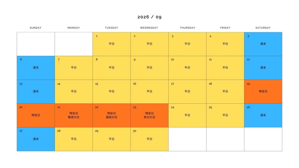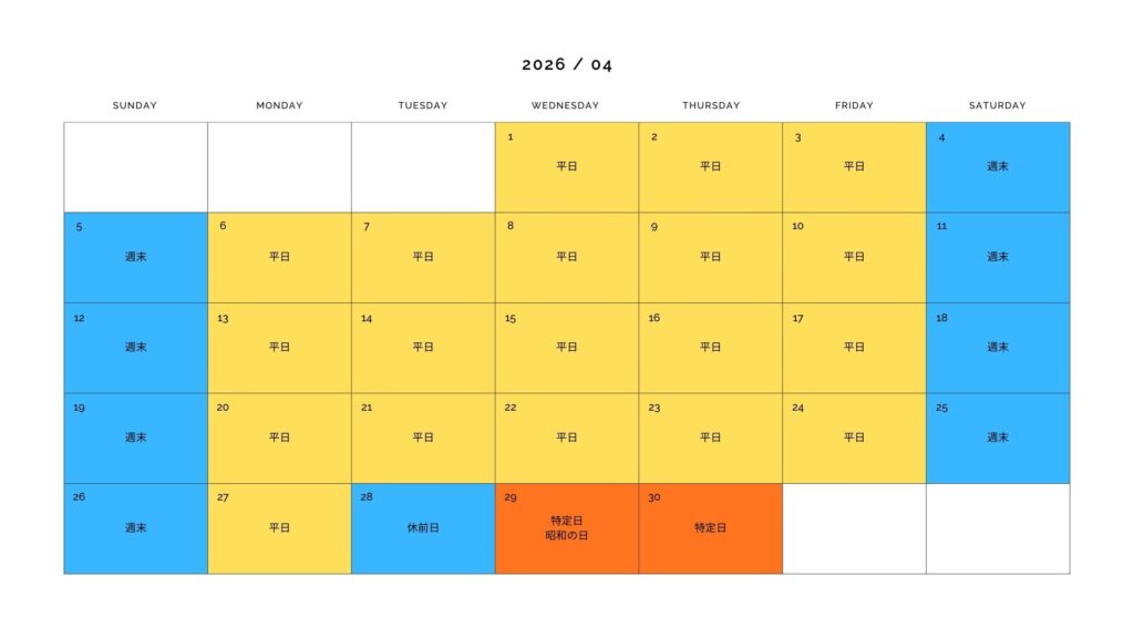■特定日:祝日・大型連休 特定日料金